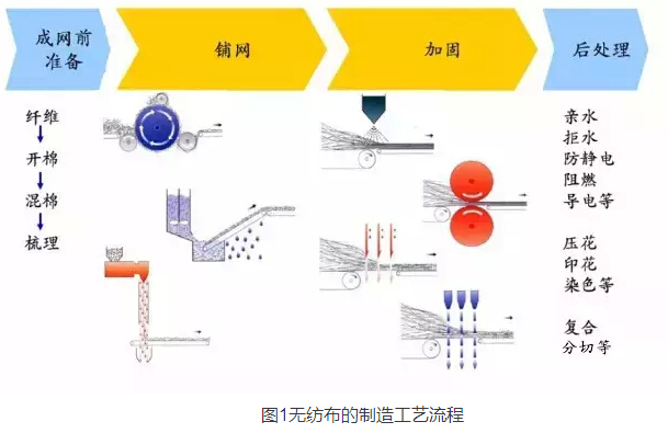 實際上無紡布的制作工藝和傳統(tǒng)的針織梭織布料是完全不同的。如圖示: